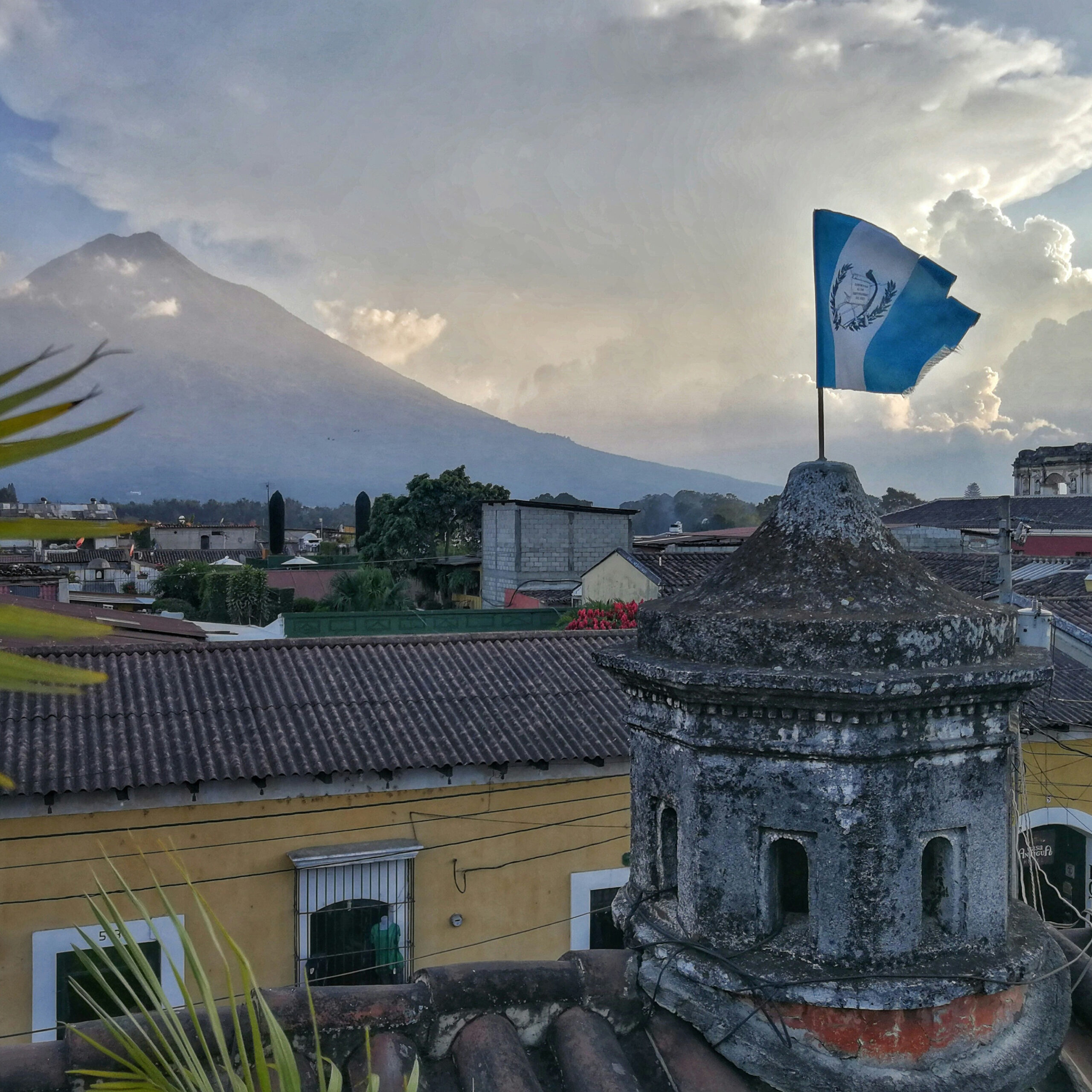 You’re walking through Antigua at dusk. The air smells of wood smoke and roasting coffee and something floral you can’t name. Bougainvillea spills over a crumbling colonial wall in violent pinks and purples. A church bell tolls somewhere behind you — not urgently, not calling you anywhere. Just marking the hour. Just reminding you that time moves differently here.